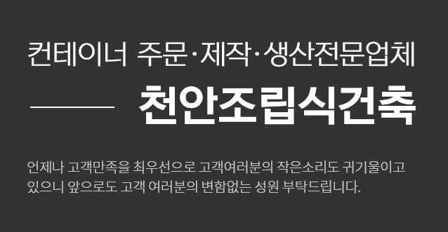궁금하신 점이 있으세요? 궁금하신 점은 문의주세요! ………… 온라인문의 바로가기 건축시공 – 판넬공사시공 BUSINESS – 컨테이너시공 BUSINESS – 배관공사 BUSINESS – 철거작업 BUSINESS 천안조립식건축의새로운 소식을 알려드립니다. 공지사항 제목 작성일 중고판넬/중고 철자재/중고트러스 문의하세요. 2011.11.03 스마트폰으로도 천안조립식건축을 검색하세요~ 2011.11.03 방음 .방염 페브릭 공사 ..시공 2009.09.04 회사소개 | About us늘 고객 여러분과 함께 성장하는정직한 기업이 되겠습니다. 주요업무 | Business건축, 건축부자재, 철거를 전문으로하는 업체입니다. 공사실적 | Result고품질의 제품 취급과 전문화된 일처리와꼼꼼한 서비스로 모시고 있습니다. 오시는길 | Map천안조립식건축 사무실오시는길을 안내해드리겠습니다. 고객님! 도움이 필요하세요?궁금하신 사항은 언제든지 문의주세요. T. 041-578-5534 F. 041-578-5535 건축시공/진행중인현장